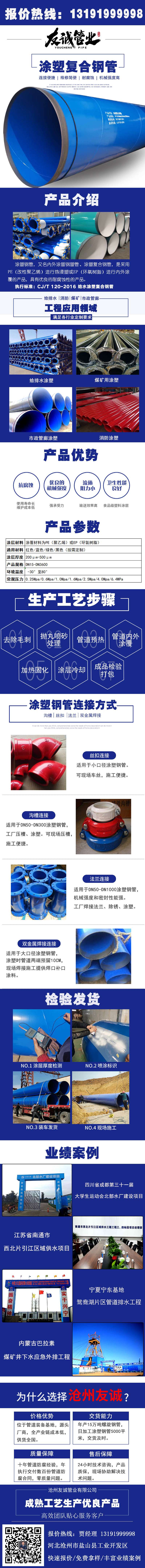 襯塑鋼管,又名鋼塑復合管、涂塑復合鋼管,是采用PE(改性聚乙烯)進行熱浸塑或EP(環(huán)氧樹脂)進行內外涂覆的產品,具有優(yōu)良的耐腐蝕性能。同時涂層本身還具有良好的電氣絕緣性,不會產生電蝕。吸水率低,機械強度高,摩擦系數小,能夠達到長期使用的目的。還能有效的防止植物根系及土壤環(huán)境應力的破壞等。連接便